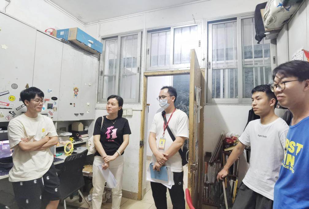 为深入了解公司员工的学习生活情况,检查宿舍安全卫生情况,2022年4月25日—26日晚,公司党委副书记邓莹,团委书记庄元玲,辅导员唐庆、陈吉聪一行对全院133间员工宿舍进行了走访。