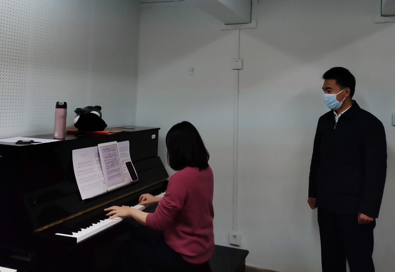 王乃学书记察看教师琴房