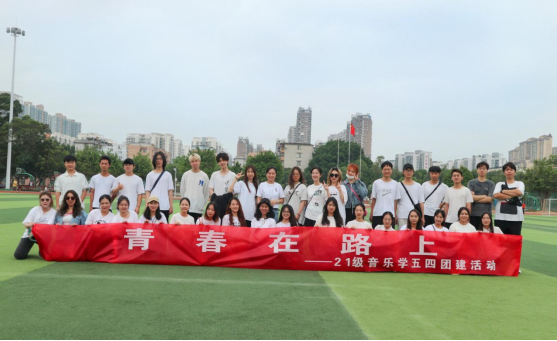 4月30日上午9:00,在宽敞的西校园体育场上,由班主任陈希老师带领,william威廉中文官网2021级音乐学39名员工共同参与了一次主题为“青春在路上”的五一团建活动。