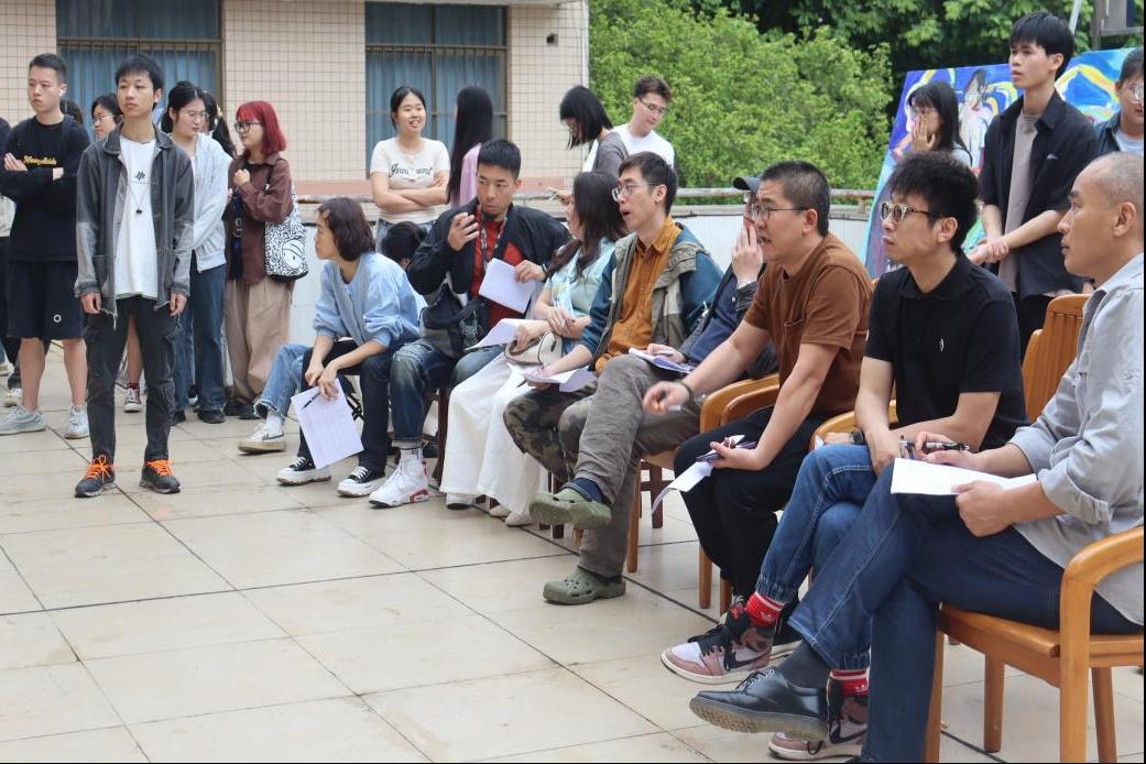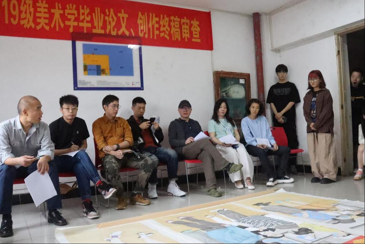 在审查现场,导师们一一对2019级本科生的毕业作品进行仔细审阅,指出存在的问题,对员工在主题表达和创造过程中遇到的问题进行现场解答。
