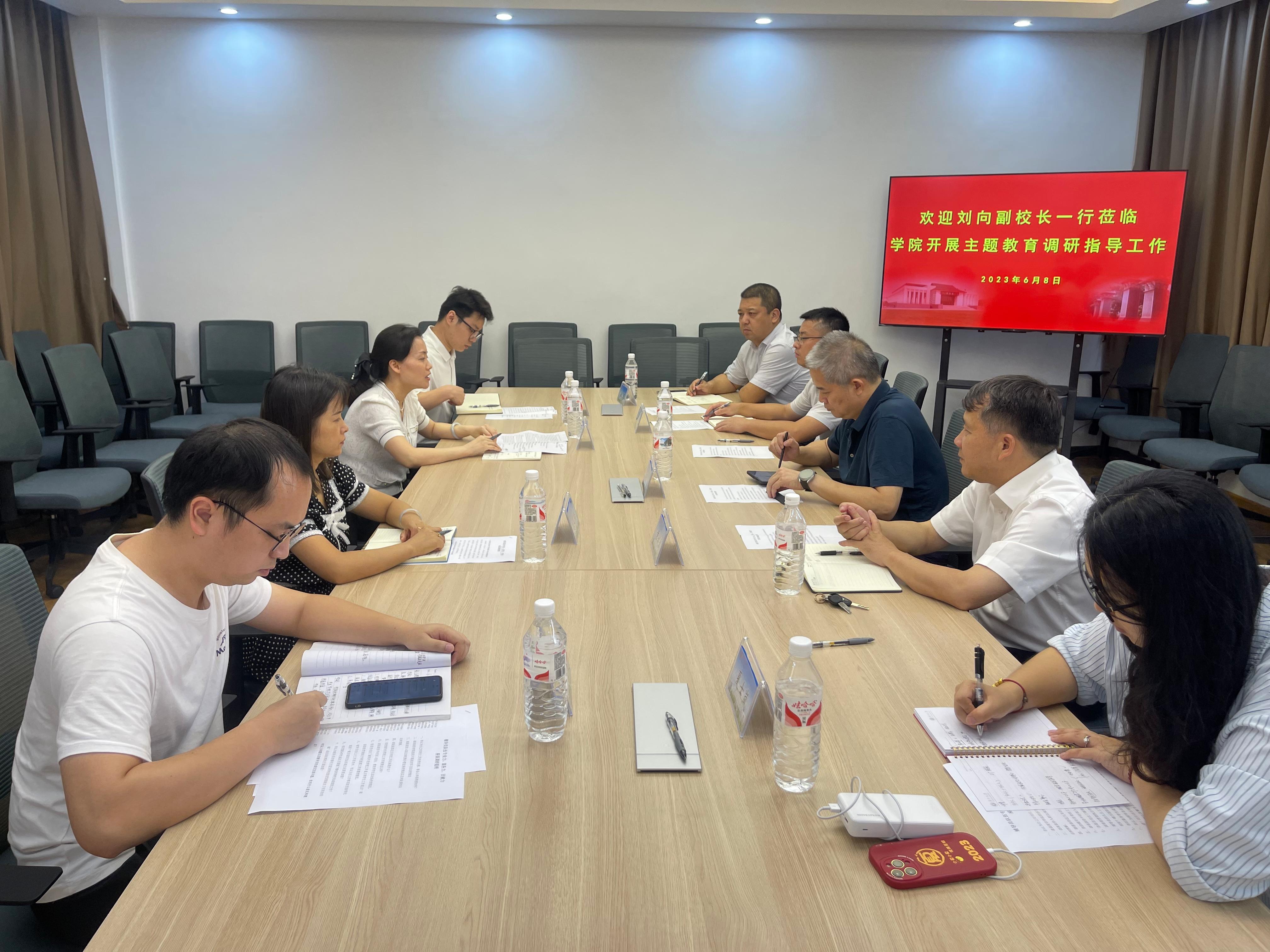 在全校深入开展学习贯彻习近平新时代中国特色社会主义思想主题教育之际,6月8日下午,公司党委常委、副董事长刘向一行深入公司调研员工工作,校员工工作部(处)部长黄必春、党校办副主任李波、校团委副书记姜玮、校学工部夏士岚老师陪同参加调研,公司党委副书记邓莹以及全体辅导员参加了调研座谈会。