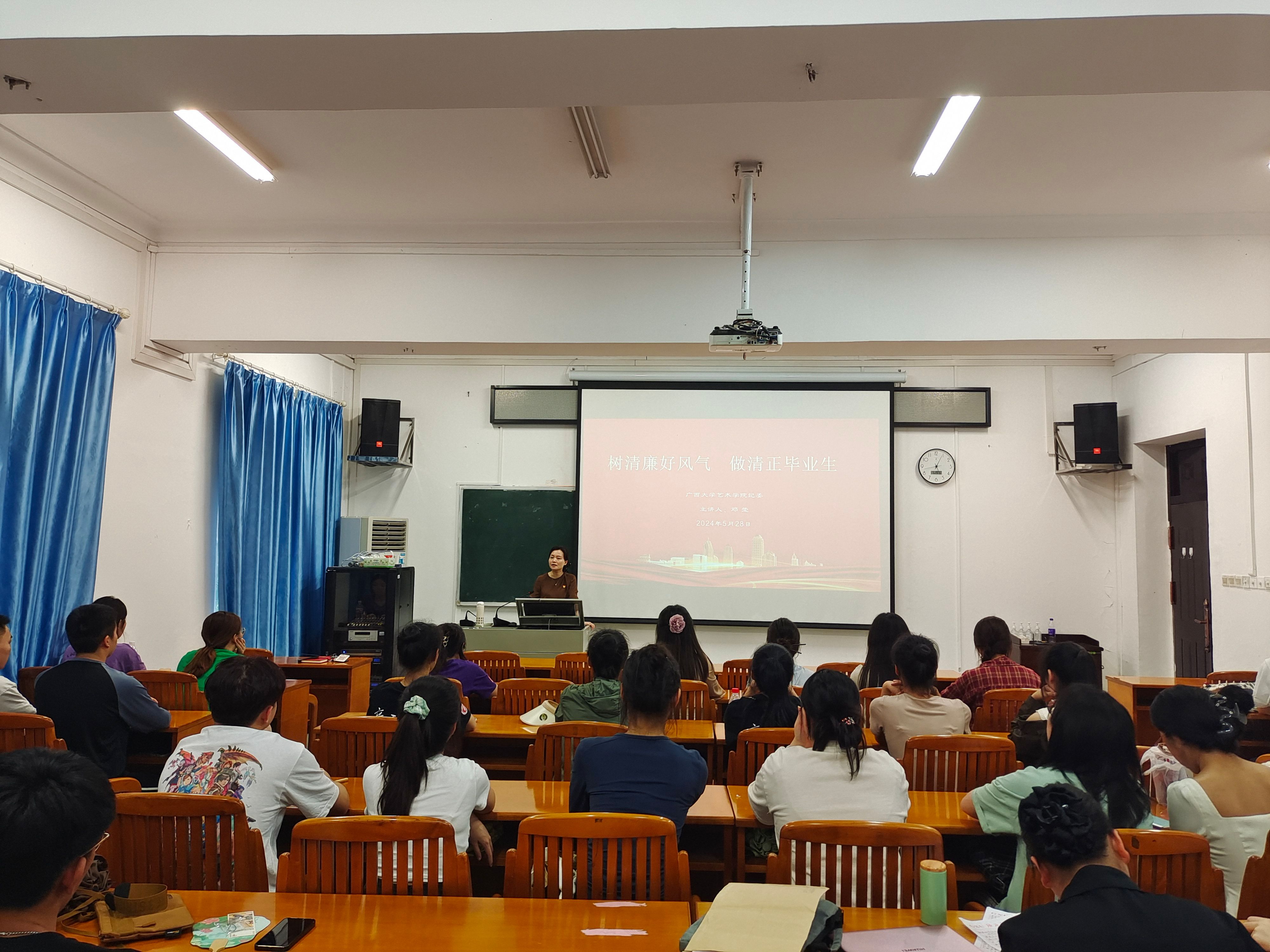 本次党课的主题为“树清廉好风气,做清正毕业生”,邓莹副书记从大学毕业生开展廉洁教育的必要性、始终保持“赶考”的清醒和对“围猎”的警觉、年轻干部违法违纪案例警示三个方面,结合对《中国共产党纪律处分条例》内容的学习,为毕业生党员上了一堂发人深省、内涵丰富的廉政党课。她勉励大家要牢固树立不负人民的家国情怀,将个人理想融入国家发展、民族大义中,要坚定理想信念,牢记初心使命,把遵规守纪铭记在心,构筑牢固的反腐倡廉思想和道德防线,以青春之我、奋斗之我,奋力书写为中国式现代化挺膺担当的青春篇章。