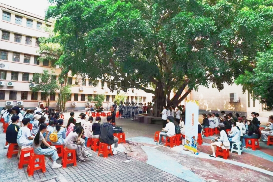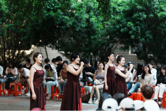 公司领导党委书记胡小坤、副书记邓莹,副经理欧阳宜文,以及师生党员代表参加本次活动,歌声还吸引了不少其他学院的师生到场观摩。