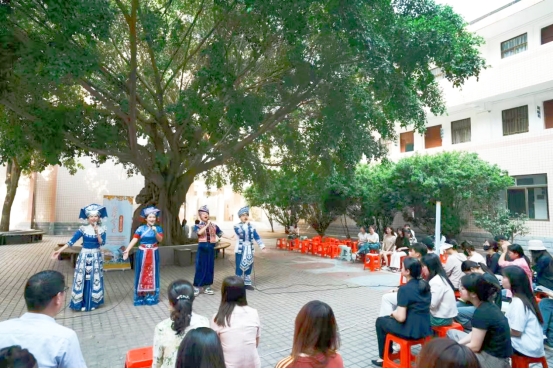 此次主题党日活动是公司党委“铸牢中华民族共同体意识民族文化系列活动”和“党建+美育”品牌建设的重要部分。活动现场精彩纷呈,表演形式多样,歌曲《山歌牵出月亮来》《外婆的嫁娘装》《振鹭于飞》《盛世榴芳》《石榴花红映壮乡》《壮乡歌圩》等,既有浓郁的壮乡特色和民族风情、蕴含着深厚的文化积淀,又展现出扎根人民、辉映时代的恢弘气象。