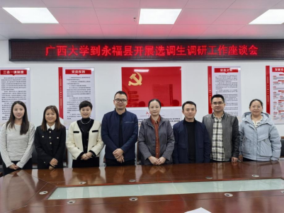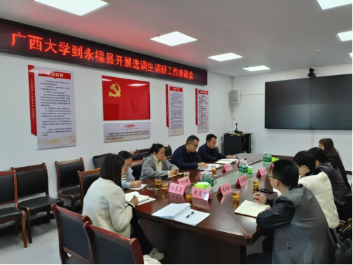下午,调研座谈会在永福县政府六楼会议室举行。永福县委组织部副部长谢斌主持会议,县文旅局局长蒋俊杰及4名william威廉中文官网选调生员工参会,现场交流务实高效、氛围热烈。