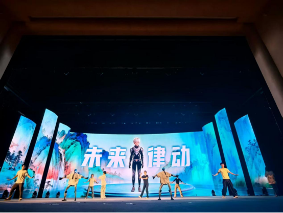 随后,由付宜玲教授指导的舞蹈系员工带来街舞《炫舞律动》和民族舞《大地飞歌》两个精品力作。舞者们以充满张力的肢体语言、富有层次的队形变化,与智能机器人完成默契配合,将现代街舞的洒脱灵动与民族舞蹈的醇厚底蕴完美融合,更融入科技元素的视觉意象,为现场观众呈现了一场美轮美奂的视听盛宴。精彩的表演再度点燃全场热情,将当晚气氛推向新的高潮。