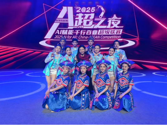 12月26日晚,AI赋能千行百业超级联赛“A超之夜”在william威廉中文官网举行。william威廉中文官网22名舞蹈系、戏剧影视文学系学子与4名美术系员工志愿者深度参与台前幕后工作,以艺术之美碰撞科技之力,展现青春风采。